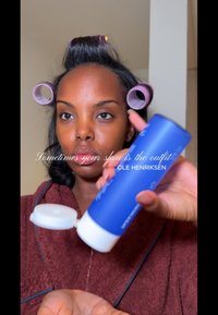 • Brun oversized skjorta med krage, bärs tillsammans med en mönstrad brun basker. Personen har flätat hår och sitter mot en ljus bakgrund.